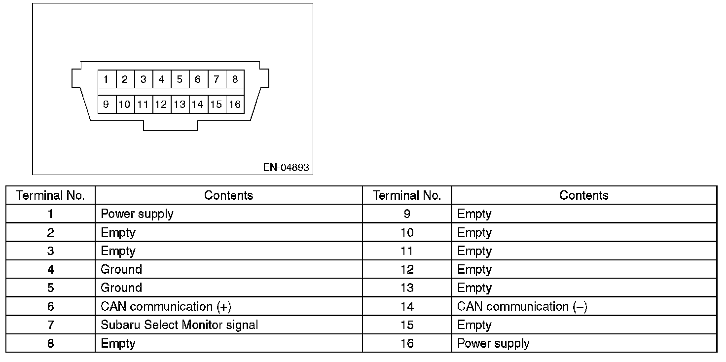 CAUTION: Do not connect any scan tools except Subaru Select Monitor or general scan tool because the circuit for Subaru Select Monitor may be damaged.
