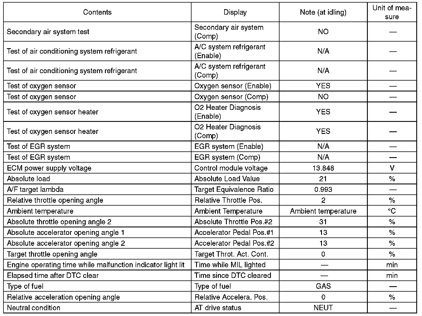 3. READ CURRENT DATA FOR ENGINE (OBD MODE)