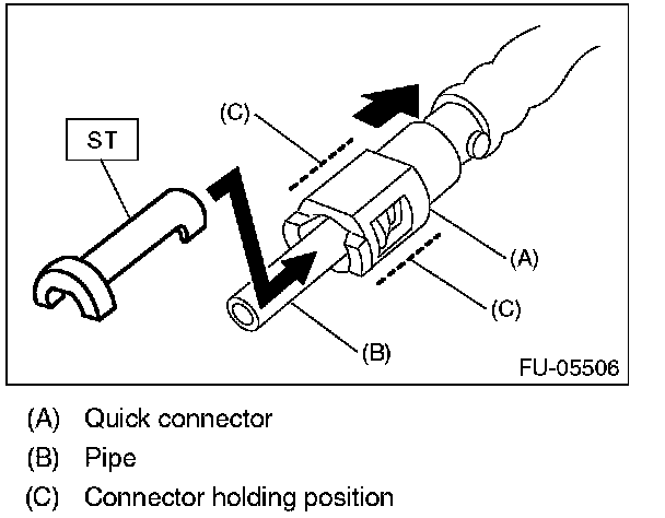 1. Attach ST to the pipe and push ST in the direction of arrow mark to disconnect the quick connector.