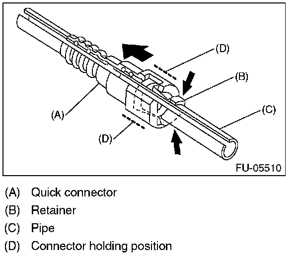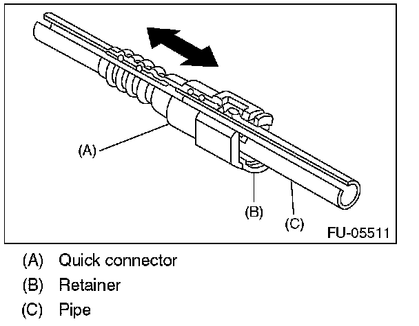 1. Push the retainer in the direction of the arrow, disconnect the quick connector from pipe.