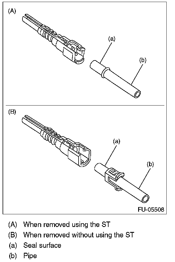 - If the connector and pipe are sticking to each other, push and pull the connector with ST pushed, and then pull the connector after it starts moving freely.