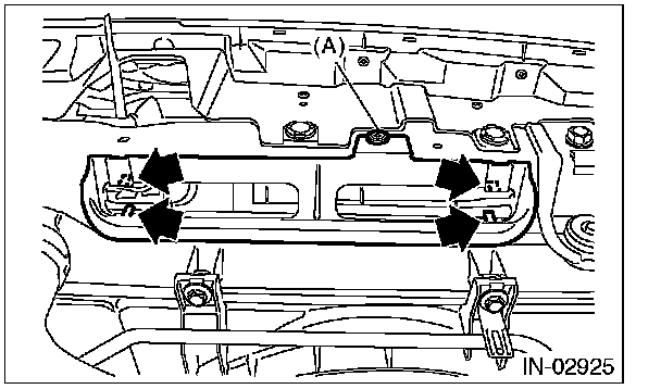 2. Remove the clip (A) and four claws, and remove the air intake duct (front).