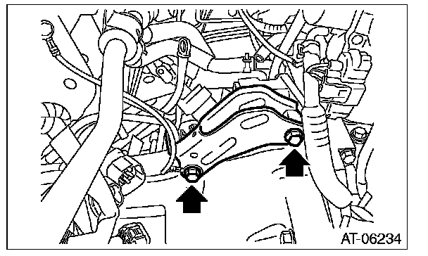 28) Remove the bolts and nuts which hold lower side of transmission to engine.