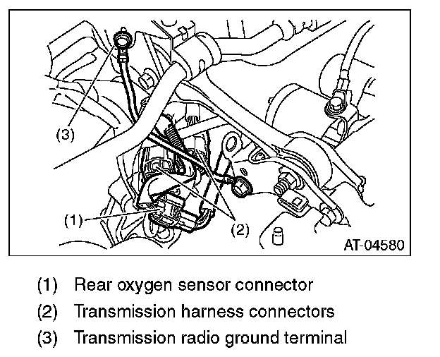 5) Disconnect the transmission harness connector and terminal.
