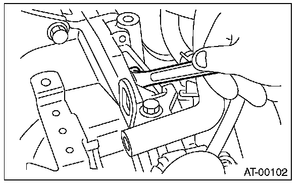 23) Remove the shift select cable from the inhibitor switch and the transmission.