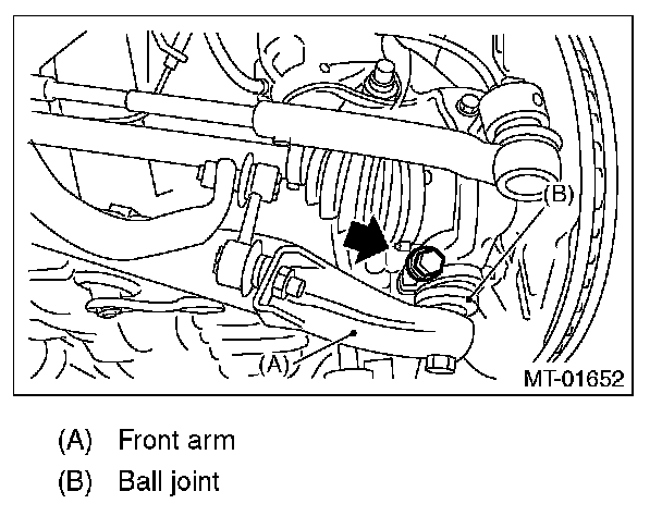 25) Remove the bolts which secure the front arm ball joint to the front housing, and separate the front arm and housing.