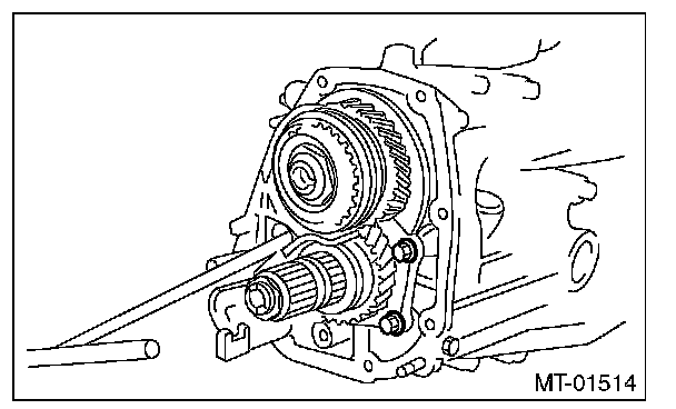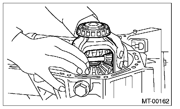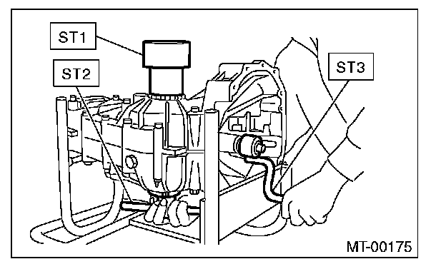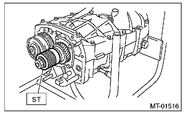 9) Place the transmission with the left side of case facing downward, and put ST1 on bearing cup.