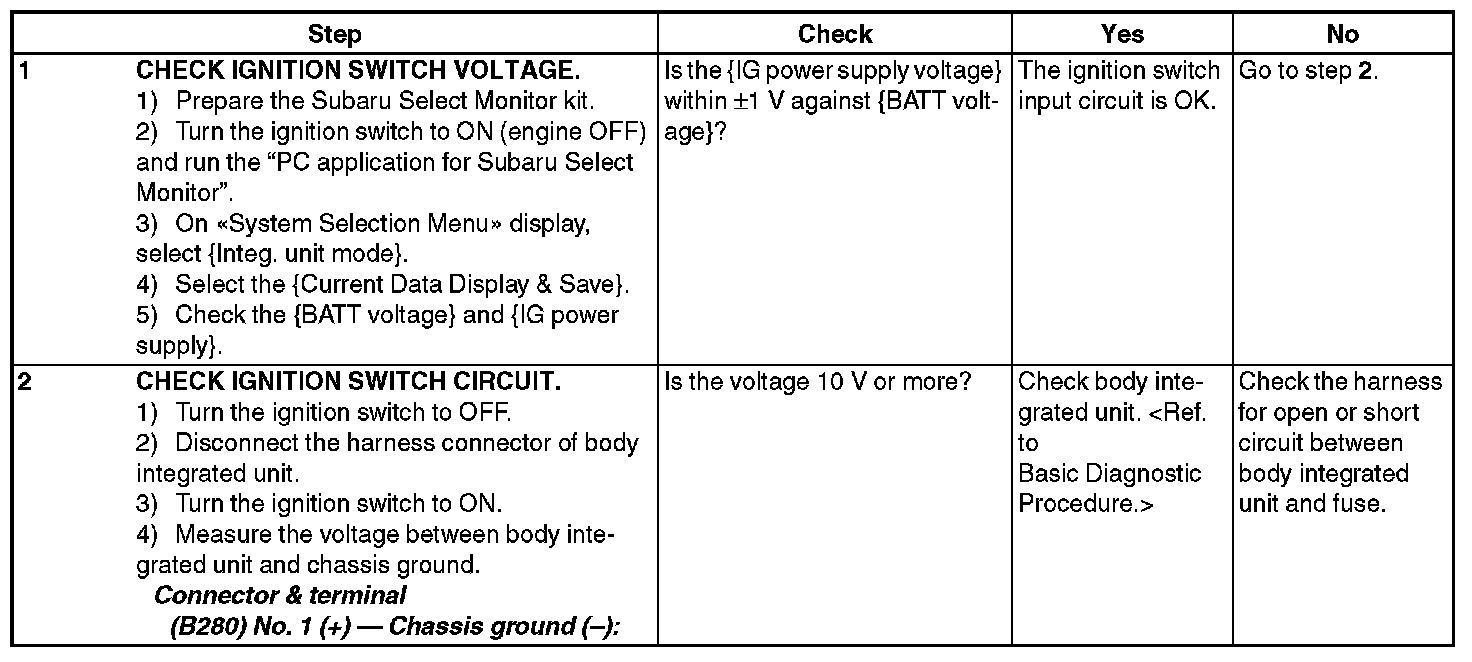 CHECK IGNITION SWITCH CIRCUIT