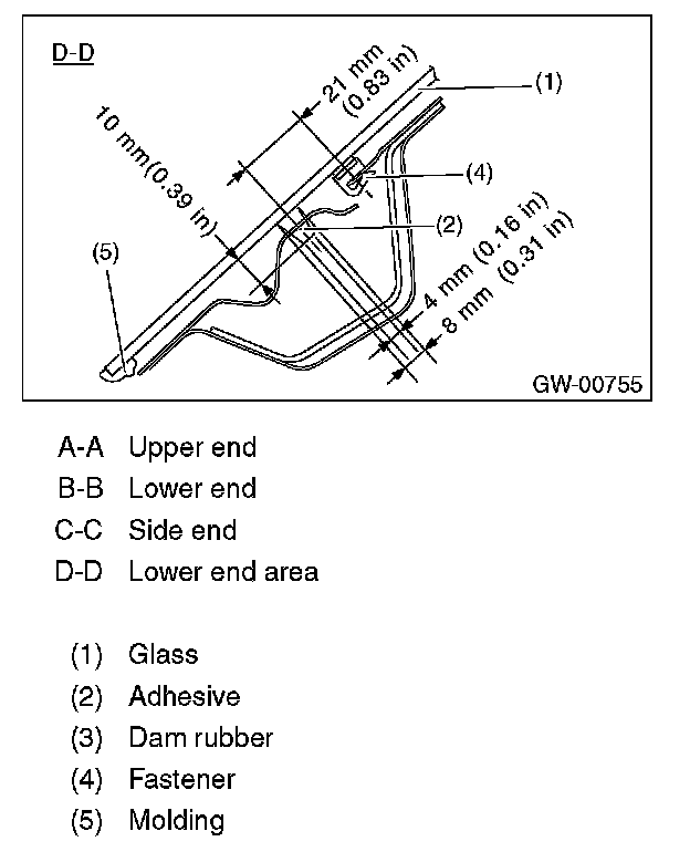 - For minimum drying time and vehicle standing time before driving after bonding, follow instructions or instruction manual from the adhesive manufacturer.