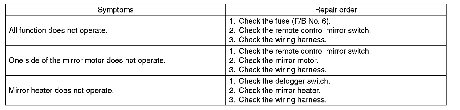 The mirror heater operates with the rear window defogger at the same time. Refer to "INSPECTION" of "Rear Window Defogger System" for details.