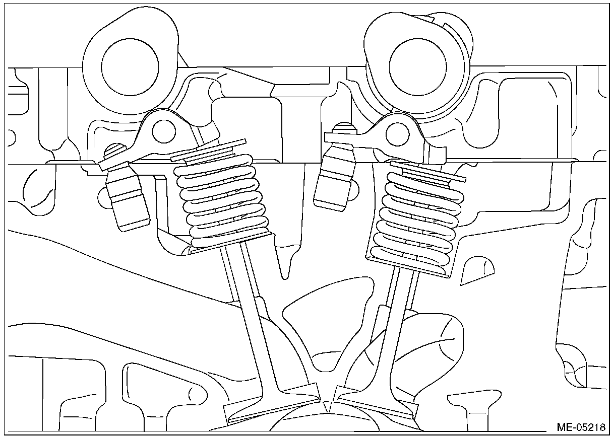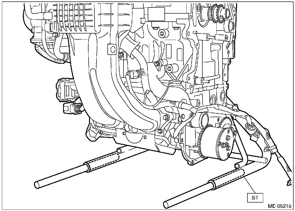 1) Insert the steel rods into ST, and set the engine so that the camshaft LH is facing up.
