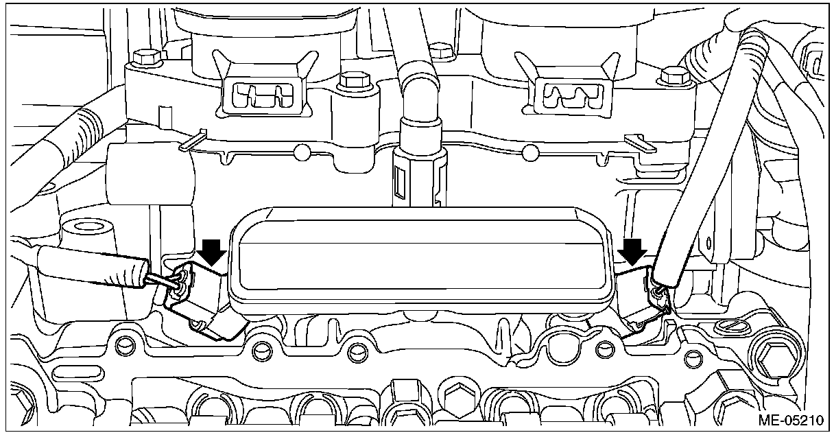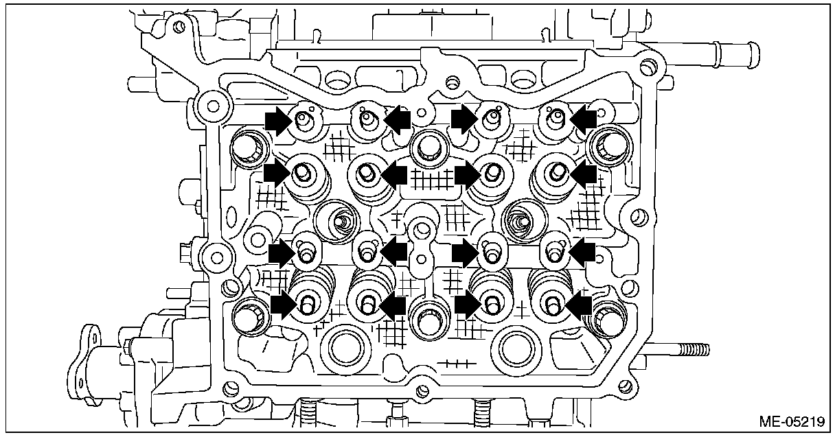 (1) Apply liquid gasket to the mating surface of front camshaft cap LH, intake rear camshaft cap LH and exhaust rear camshaft cap LH as shown in the figure.
