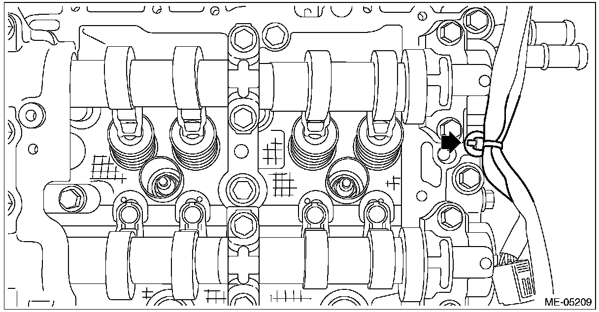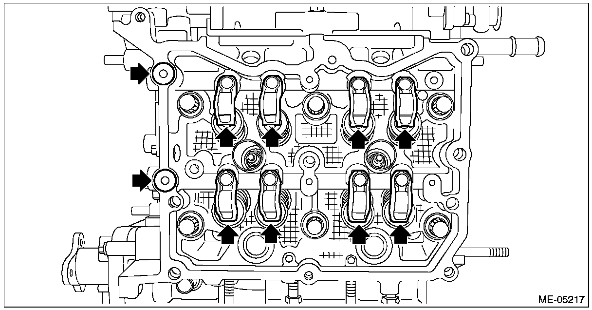 Apply engine oil to the journals of cam carrier RH before setting the intake camshaft RH and exhaust camshaft RH.