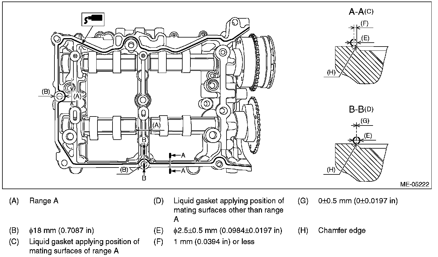 4) Apply liquid gasket to the mating surface of cam carrier LH as shown in the figure.