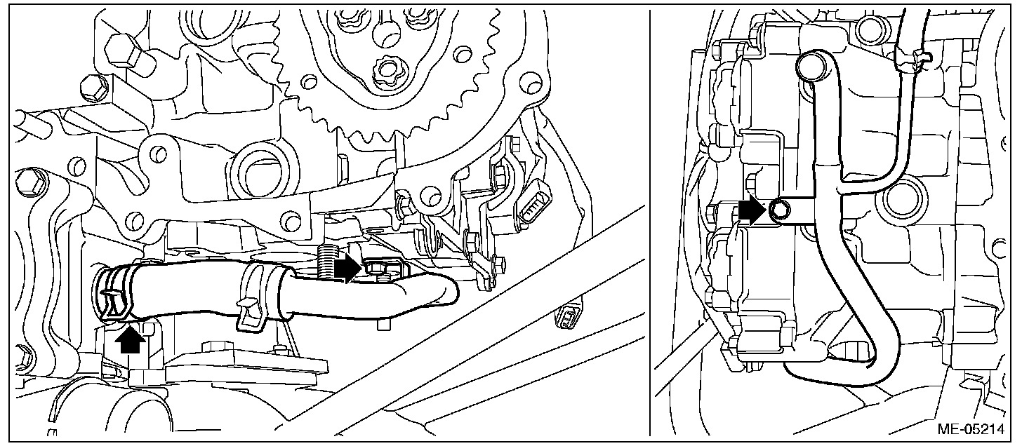 11) Connect the water pipe hose to oil pan upper, and install the water pipe assembly.
