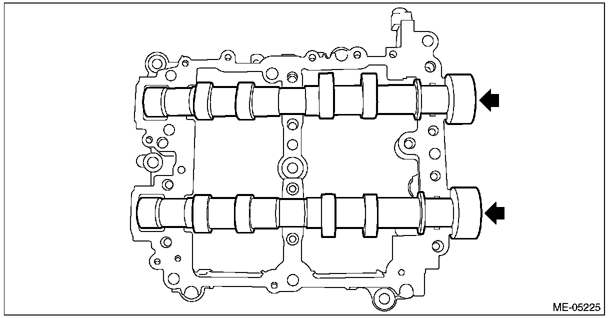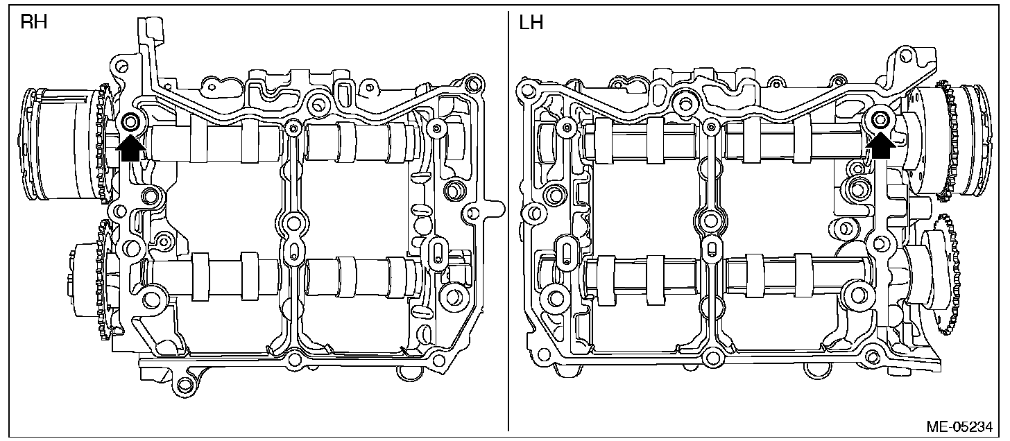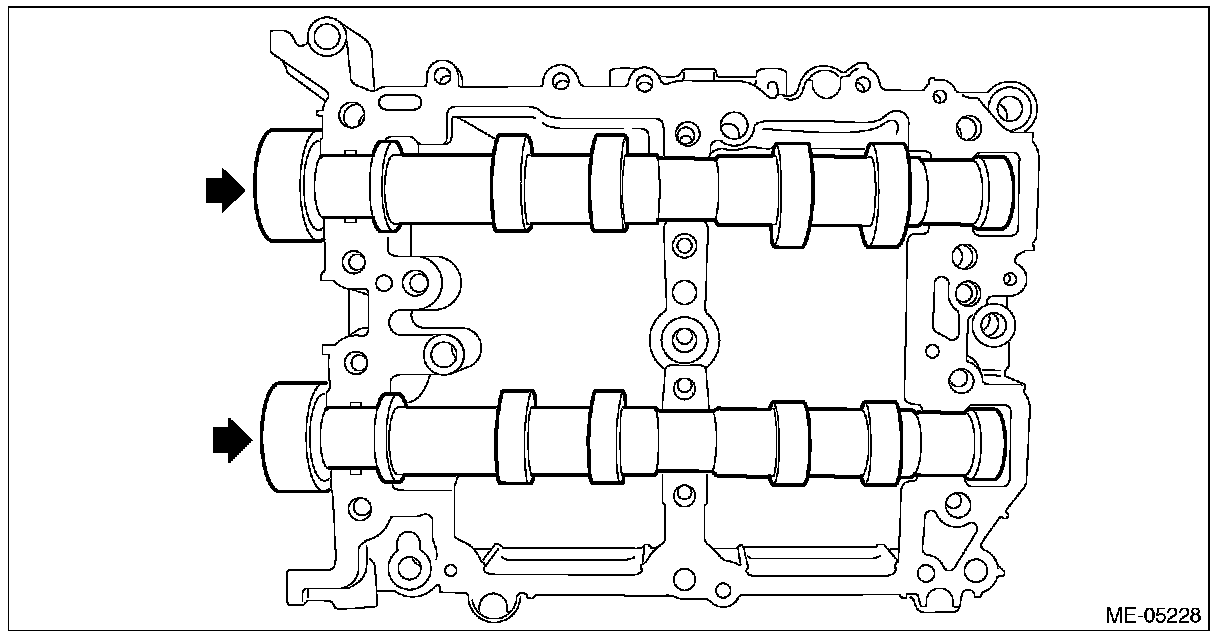 2) Remove the intake camshaft RH and the exhaust camshaft RH from cam carrier RH.