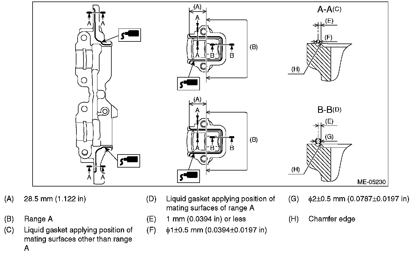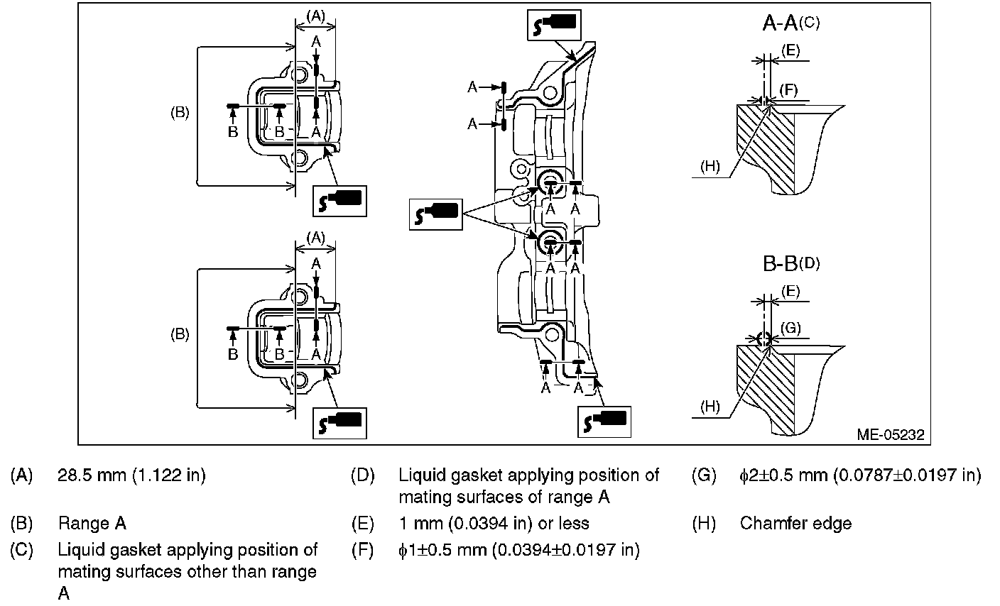 Install within 5 min. after applying liquid gasket.