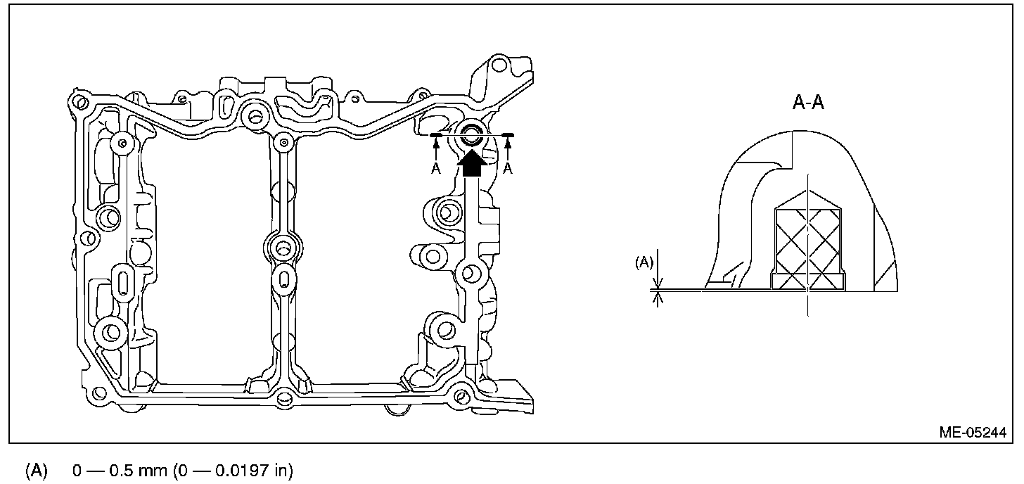 ^ Do not apply liquid gasket excessively. Applying excessively may cause excess gasket to flow toward cam journal, resulting in engine seizure.
