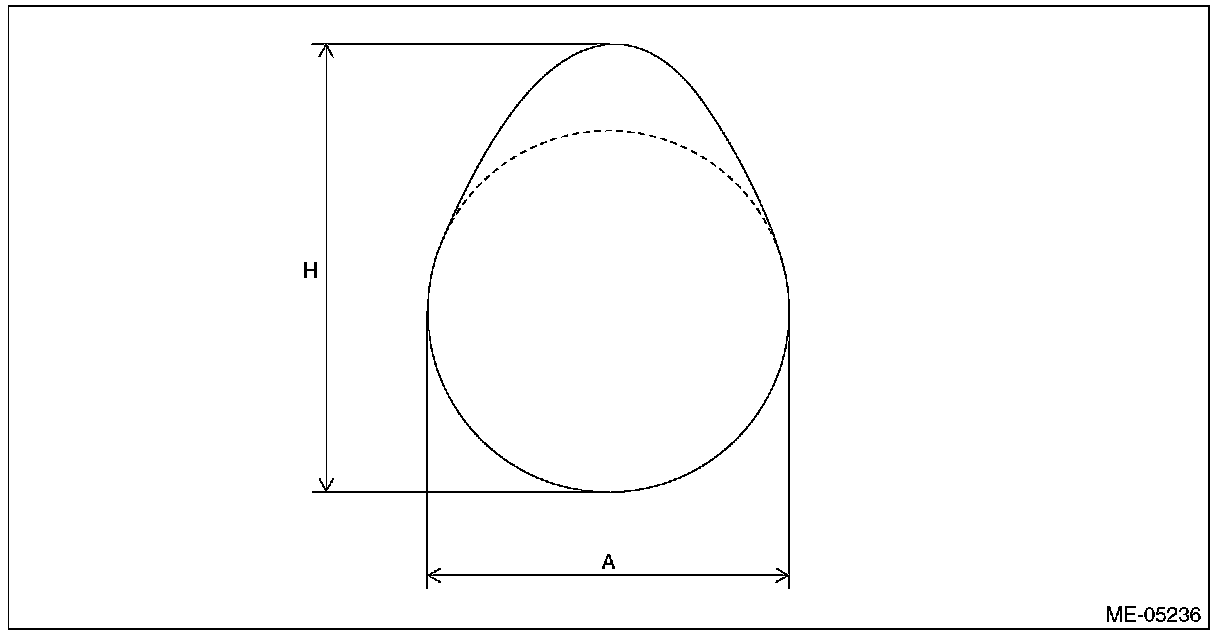 5) Check the cam lobe height "H" and cam base circle diameter "A" of camshaft using micrometer. If it is not within the standard, replace the camshaft.
