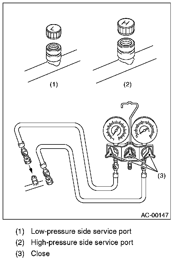 3. Make sure the valves on low/high pressure sides of manifold gauge set are fully closed.