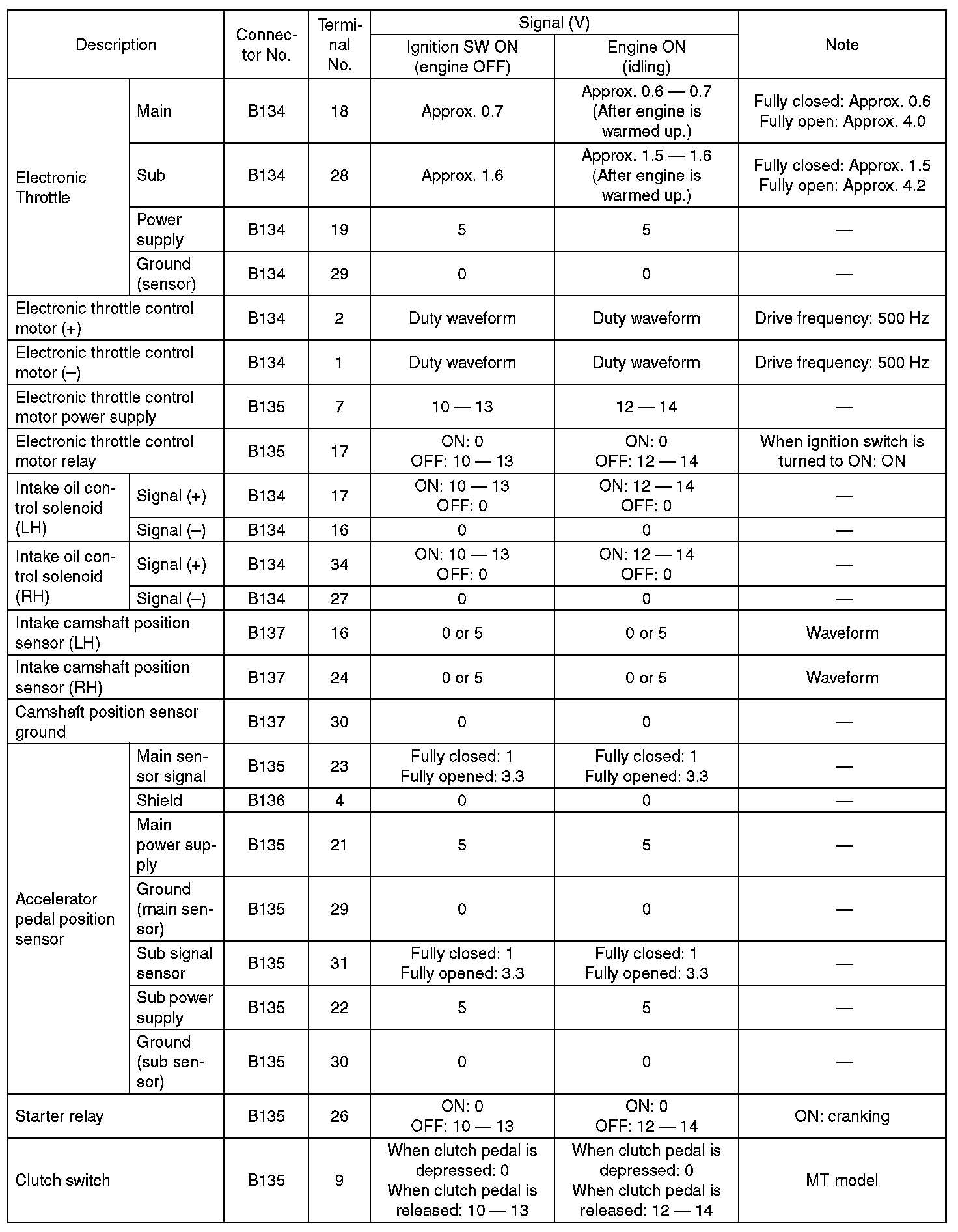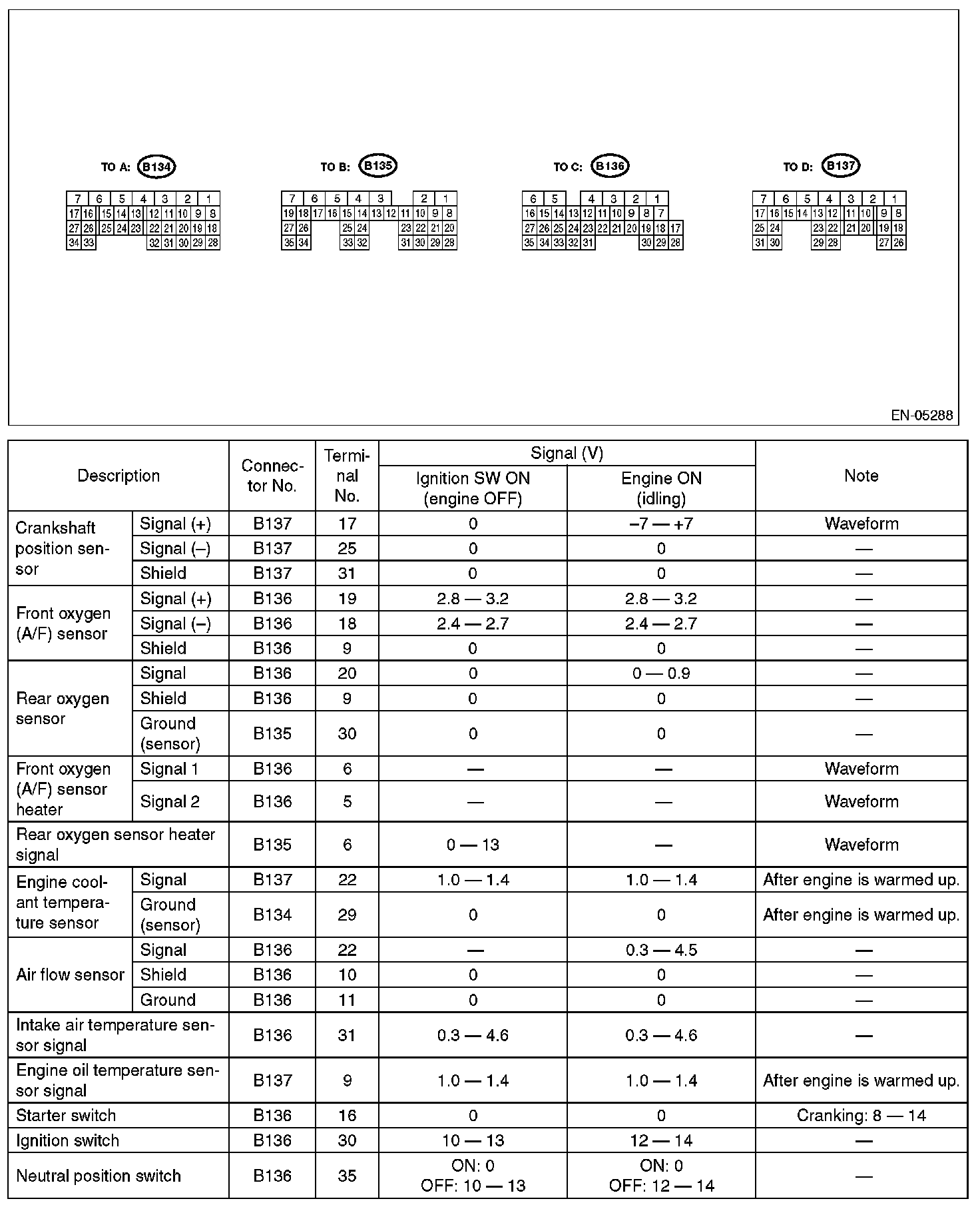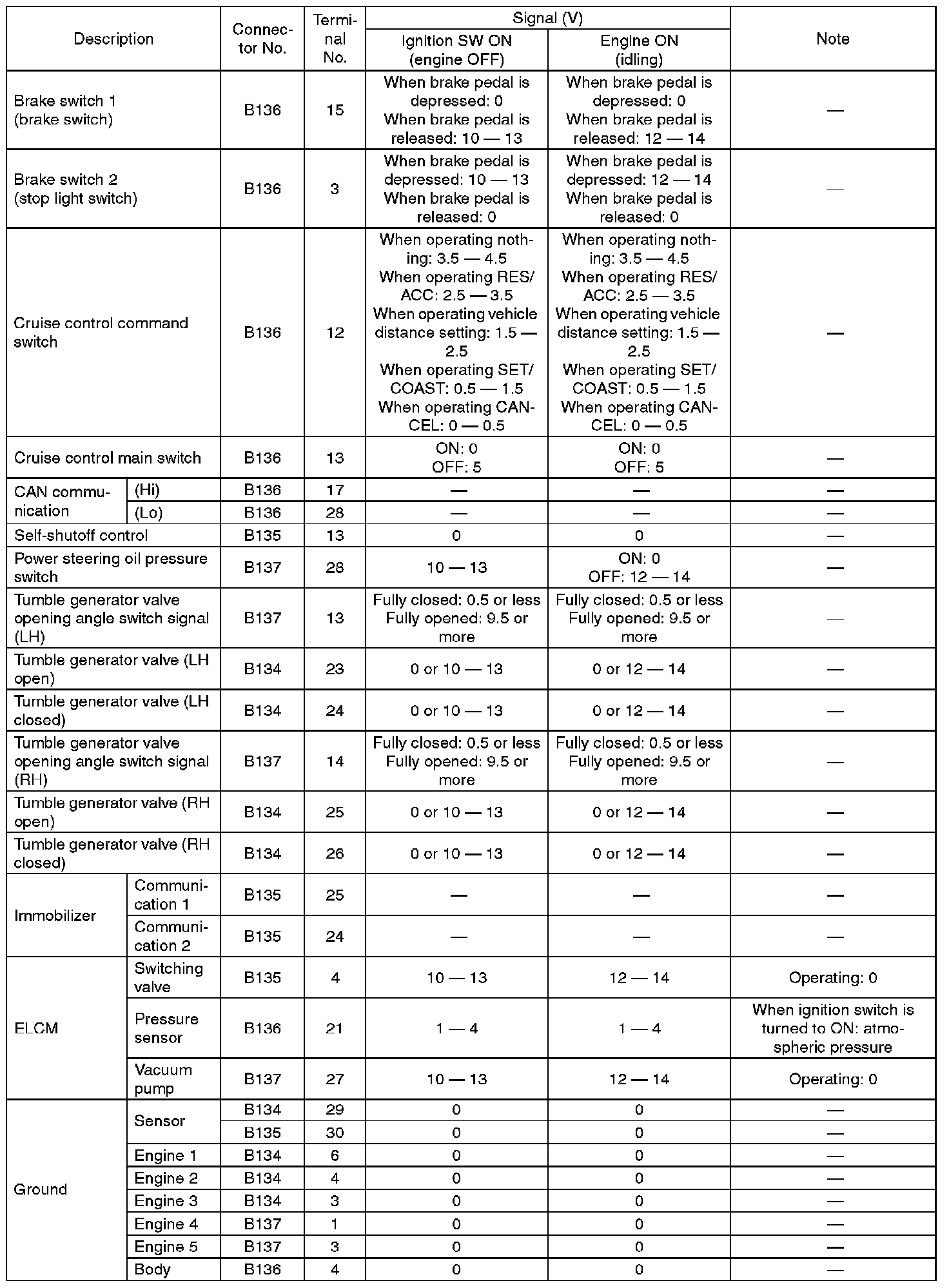 Pinout Values and Diagnostic Parameters