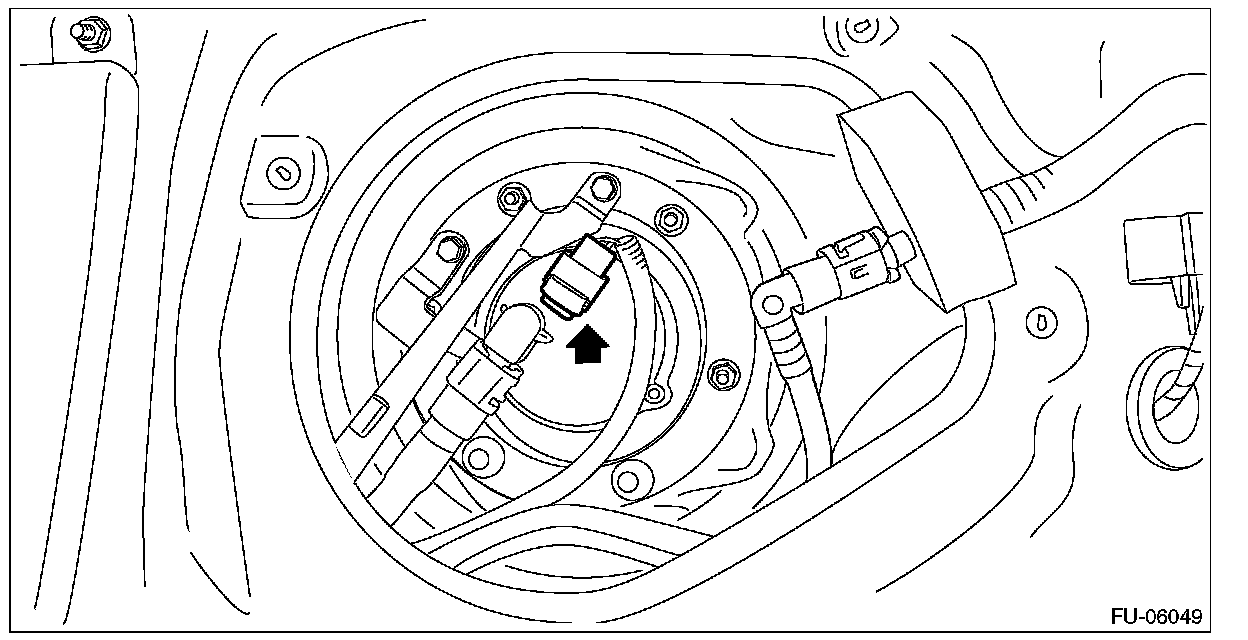 6. Disconnect the connector from the fuel sub level sensor.