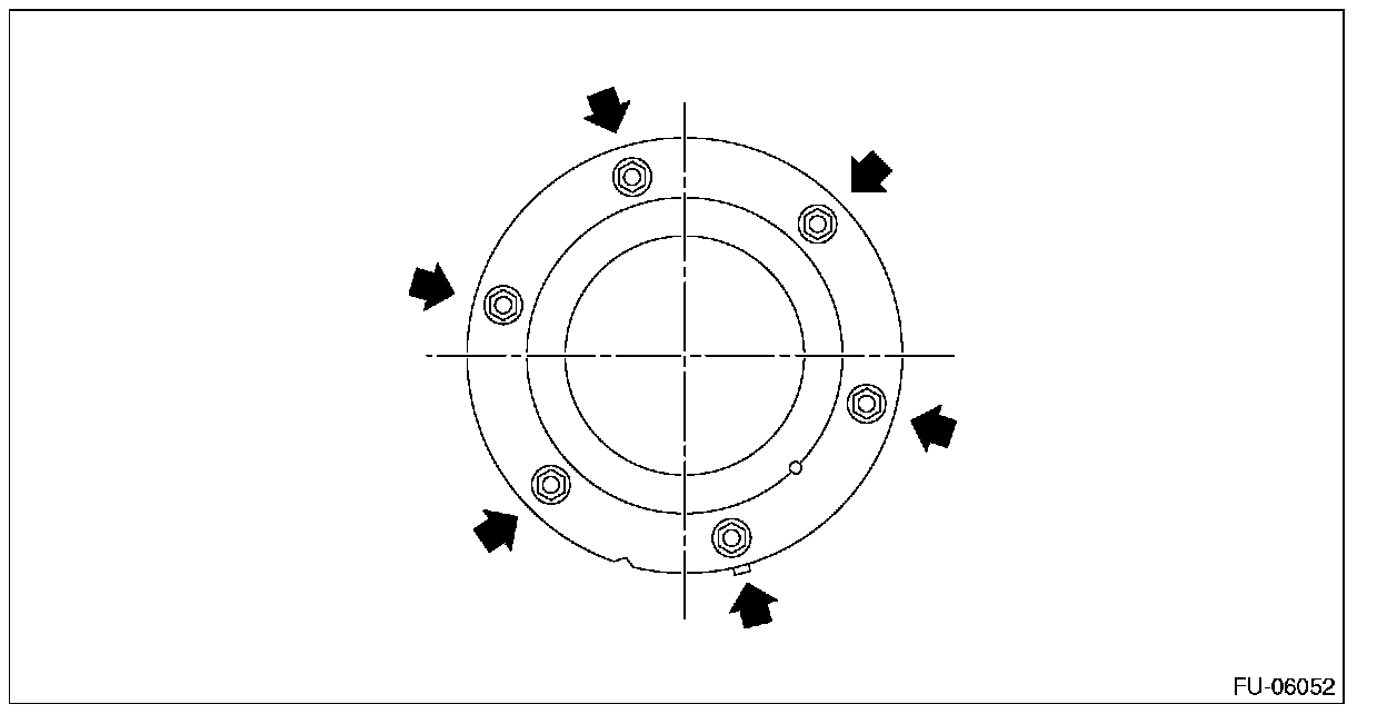 - Tighten the nuts and bolts to the specified torque in the order as shown in the figure.