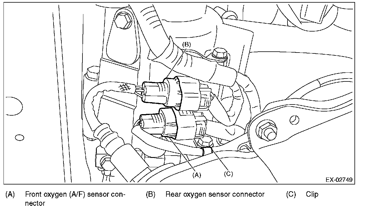 4. Disconnect the rear oxygen sensor connector.