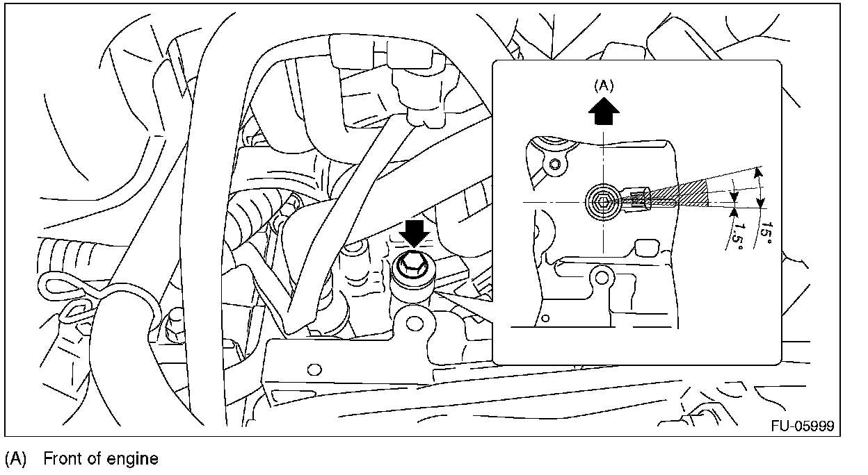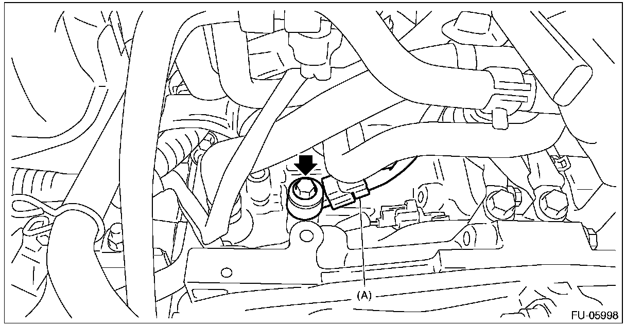 3. Disconnect the connector (A) from the knock sensor, and remove the knock sensor from the cylinder block.