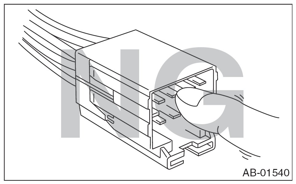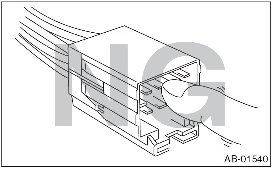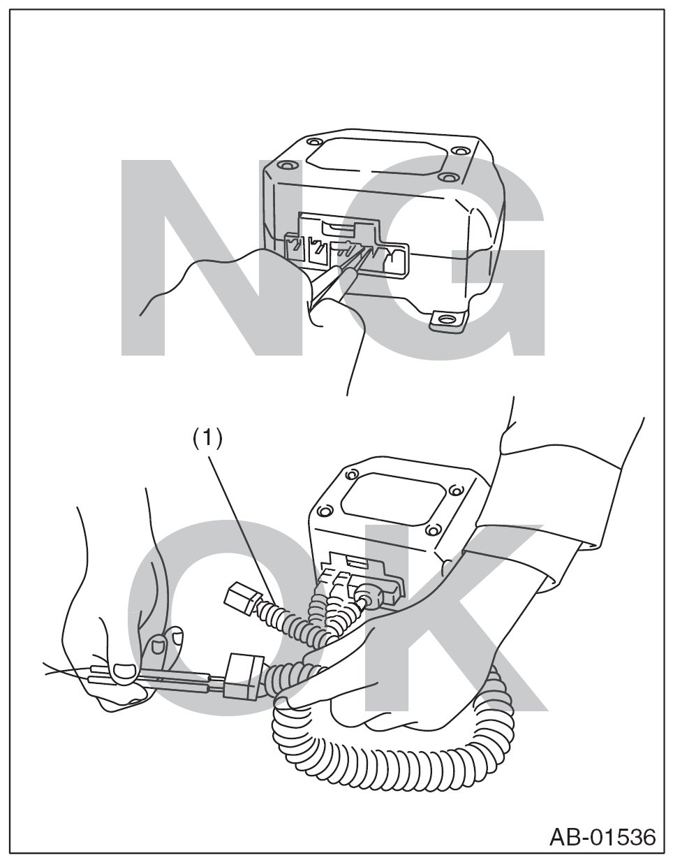 - When checking, use a test harness (1). Damage to connector terminal causes malfunction. Do not directly put the tester probe on airbag connector terminal.