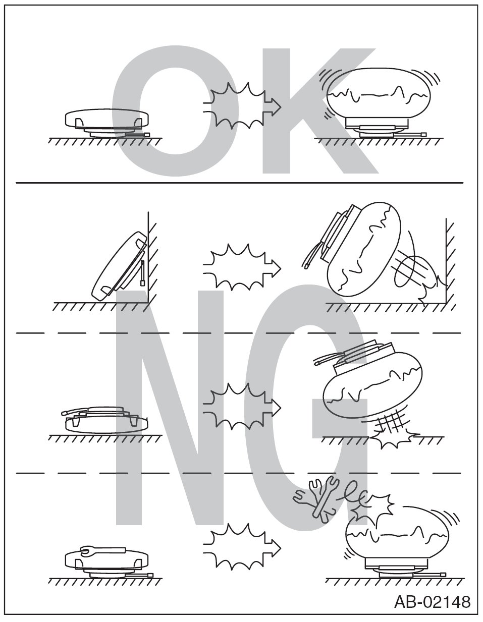 - Do not drop each airbag module, airbag control module and each sensor, or store these parts under high temperature of 85°C (185°F) or more, or let water, oil or grease get on them; the internal parts may be damaged or the reliability may be decreased.