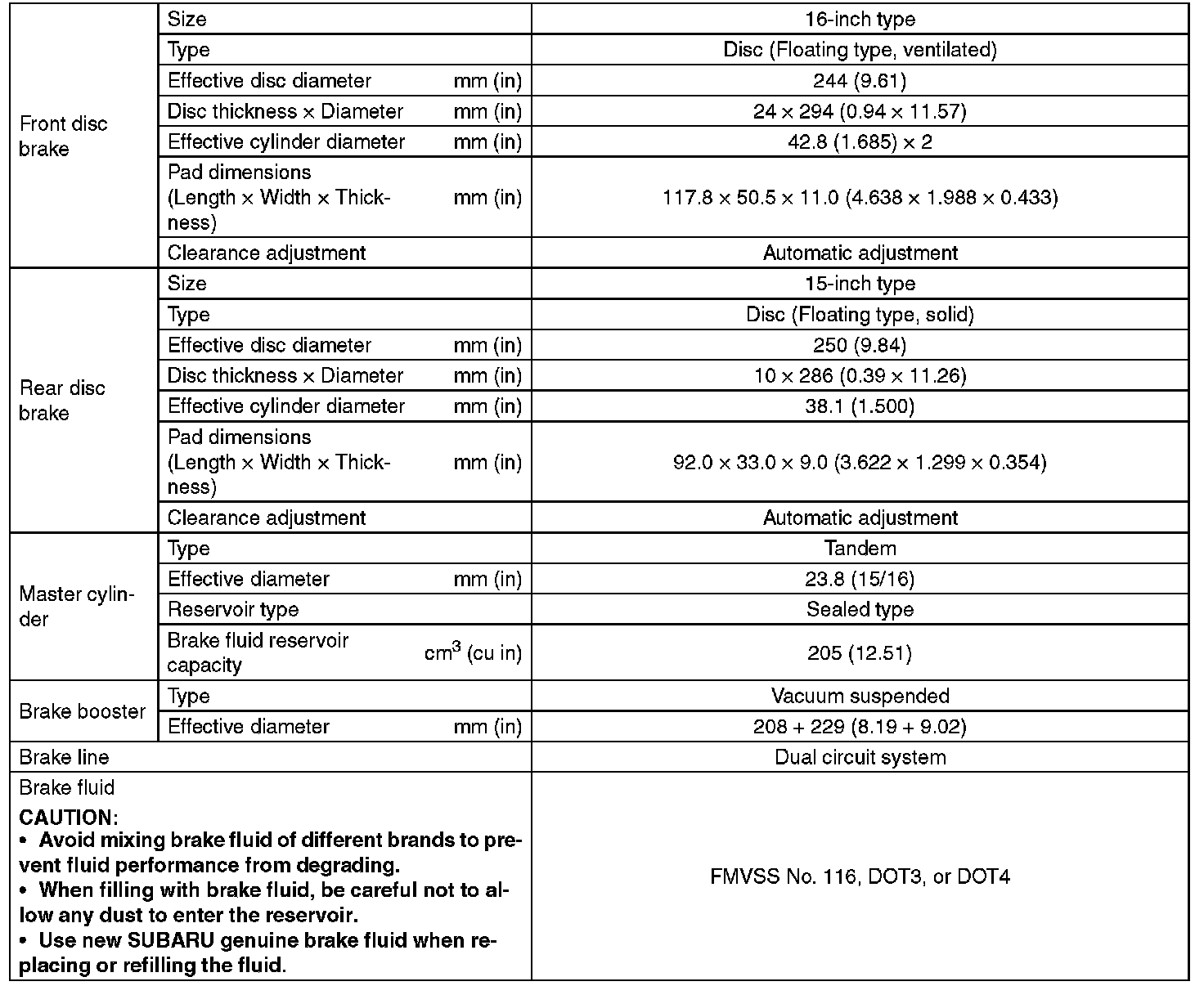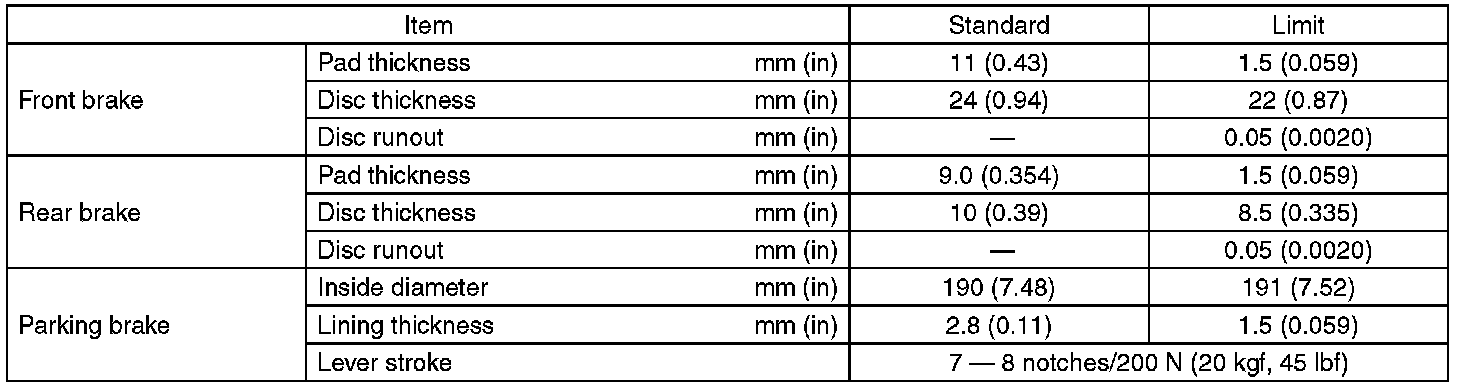 Refer to "PARKING BRAKE" for parking brake specifications.