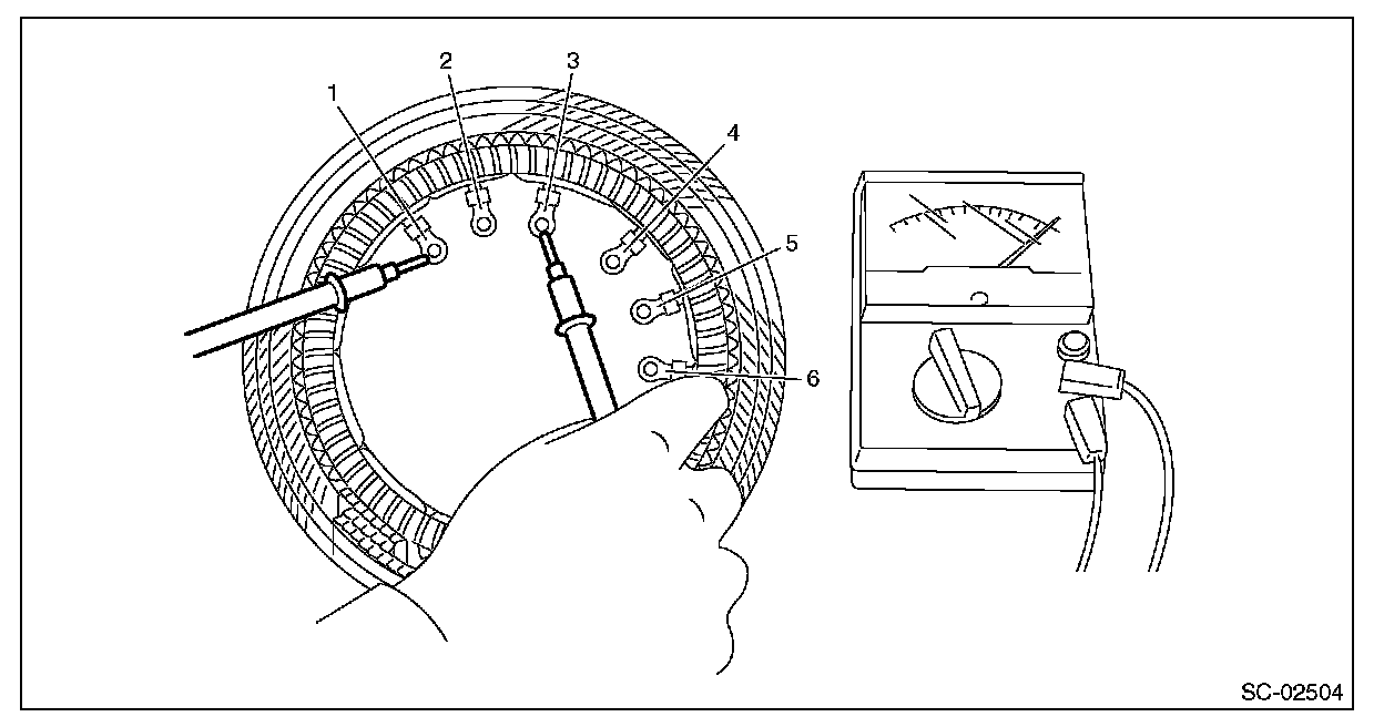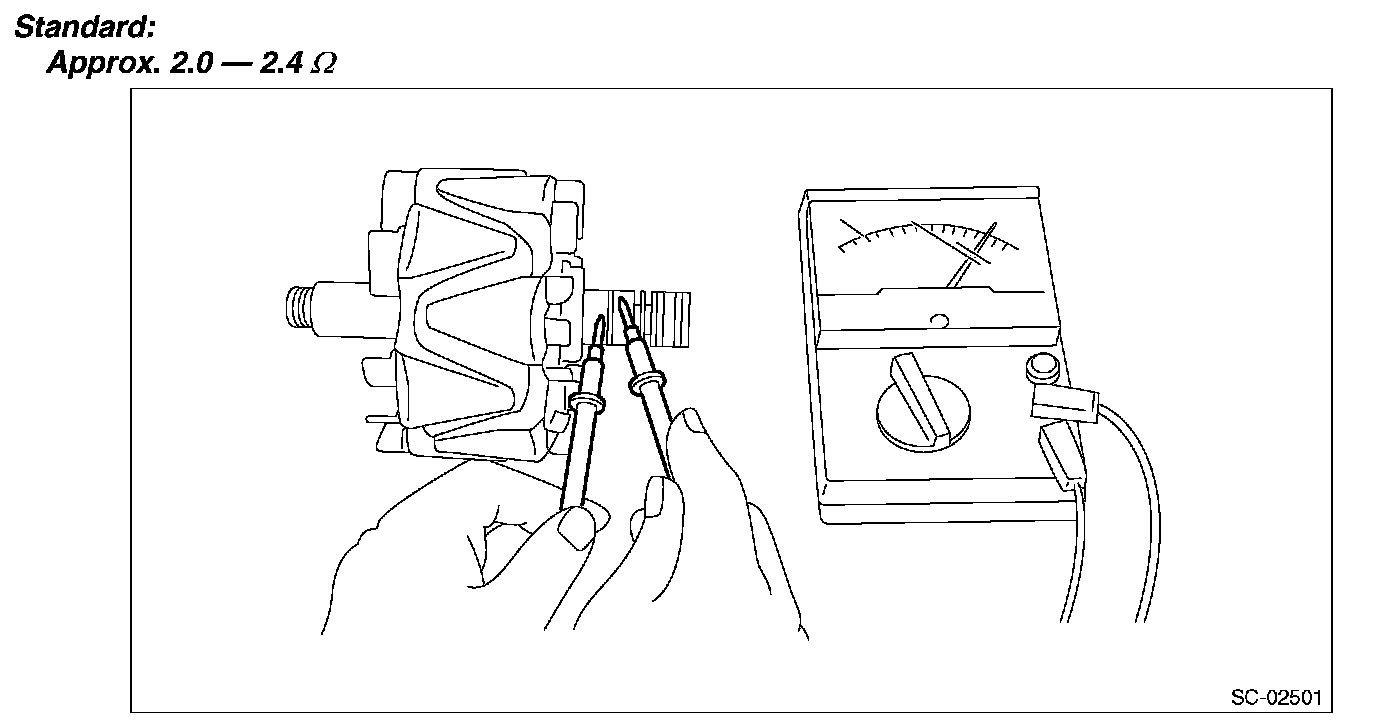 Using a circuit tester, check the resistance between slip rings. If the resistance is not within the standard, replace the rotor.