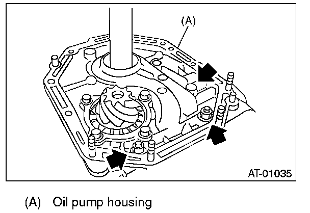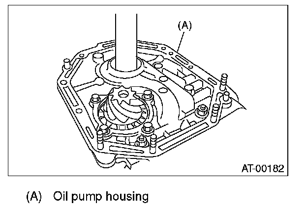 2) Apply ATF to the O-ring and attach it to the oil seal retainer. Install the seal to the oil pump housing bore.