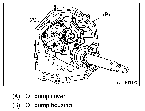 2) Remove attachment bolts, then remove the oil pump cover by lightly tapping the end of the stator shaft.