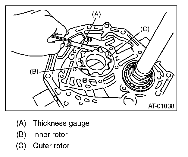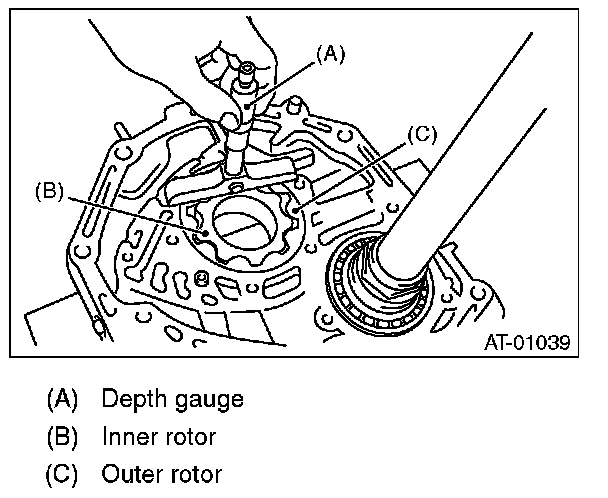 Set a depth gauge to oil pump housing, then measure the oil pump housing-to-rotor clearance.