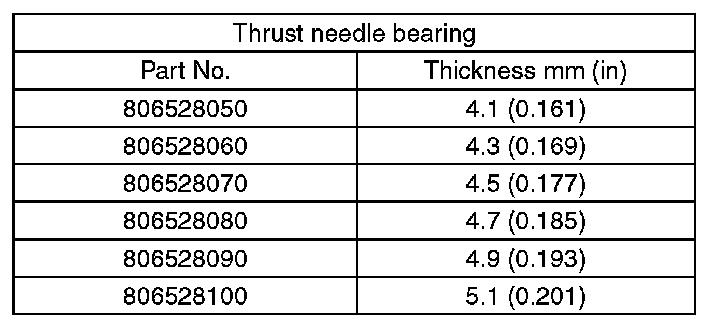 Select a suitable bearing race from the table below and adjust the clearance "C" so that it will be within 0.25 to 0.55 mm (0.0098 to 0.0217 in).