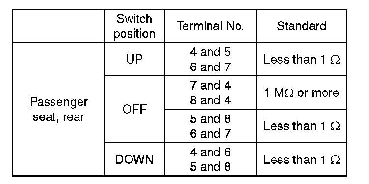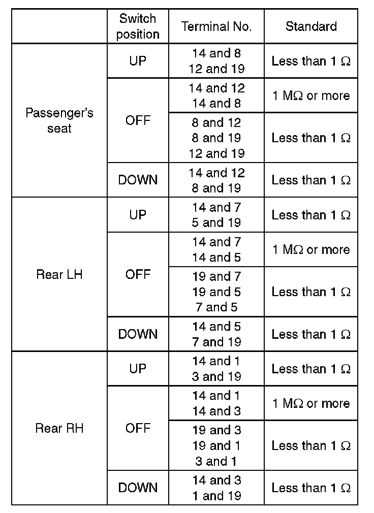 2. Replace the power window main switch if the inspection result is not within the standard value.