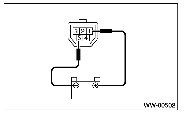 1. Check that the wiper motor operates at low speed when the battery is connected to the connectors terminal as shown in the figure.
