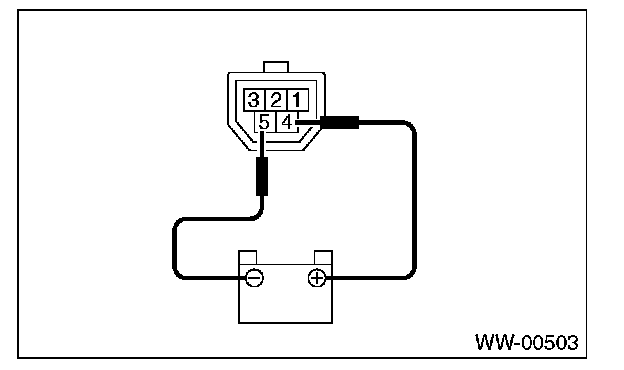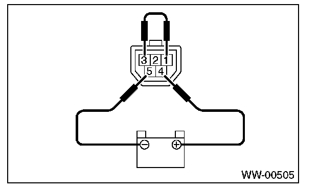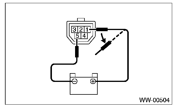 3. Connect the battery to the terminals to the connector, run the motor at low speed, and then disconnect the terminal to stop the wiper motor in mid motion.