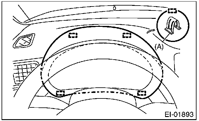 5. Detach the plastic hook (A), and remove the instrument panel side cover RH.