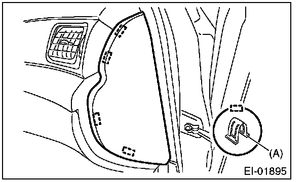 1. Remove the plastic hook (A), and remove the instrument panel side cover LH.