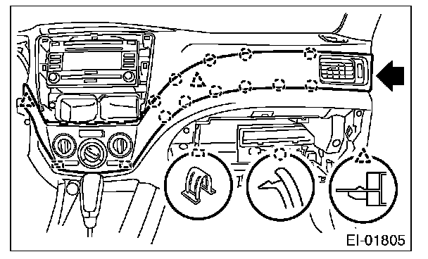 NOTE: When removing the console front panel, pull it in the direction of the rear vehicle.