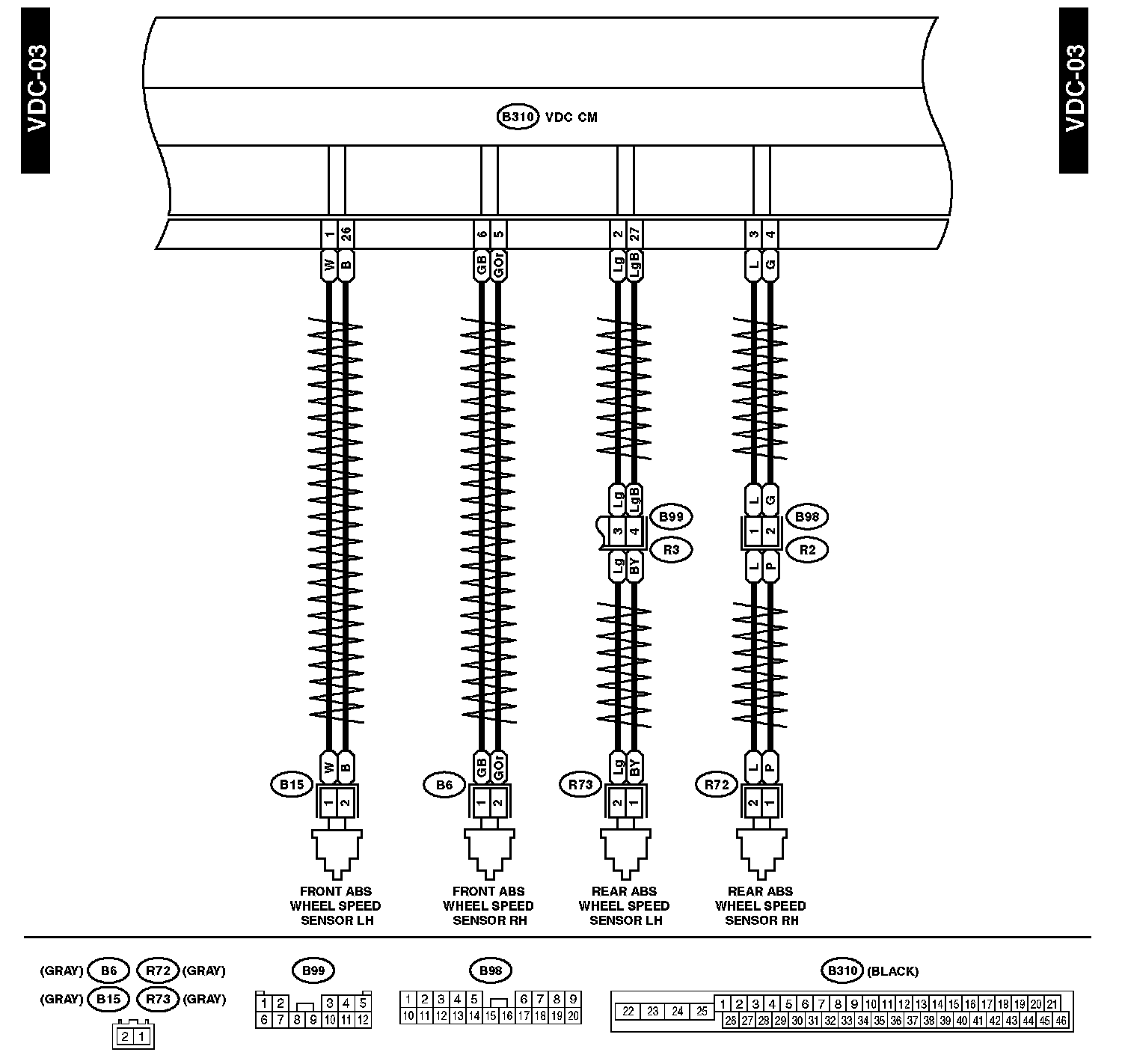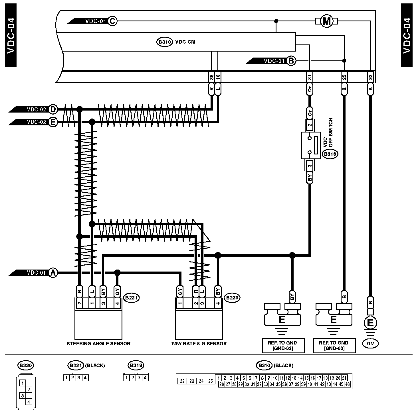 Vehicle Dynamics Control SystemConnector and Ground Locations: The locations of the Connectors or Grounds shown within these diagrams can be found via the connector or ground number at Vehicle Locations. Locations