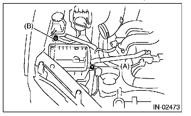 1. Install the bolt (A) and nut (B) which secure the air cleaner case (front) to the body.