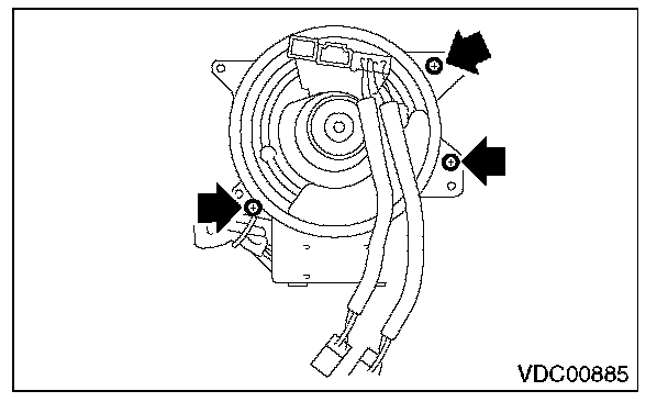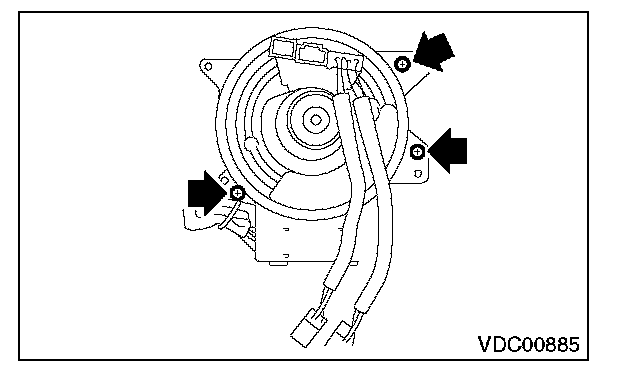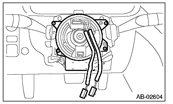 10) Remove the screws which secure the roll connector to steering column.
