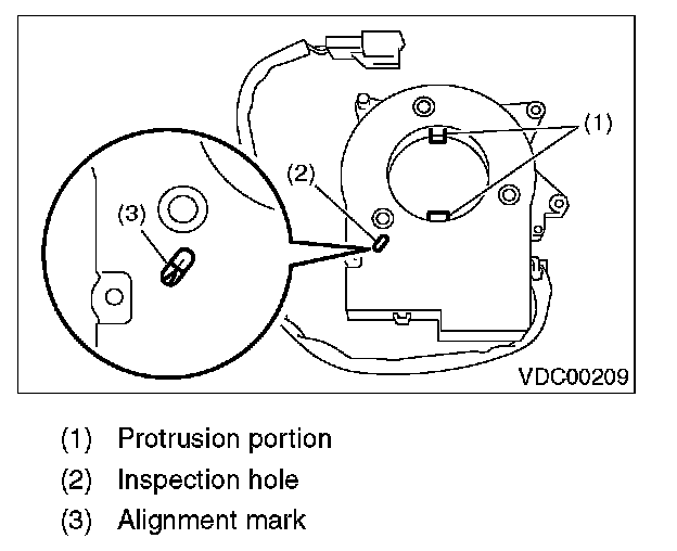 12) Turn the protrusion portion of new steering angle sensor to match the alignment mark of inspection hole.
