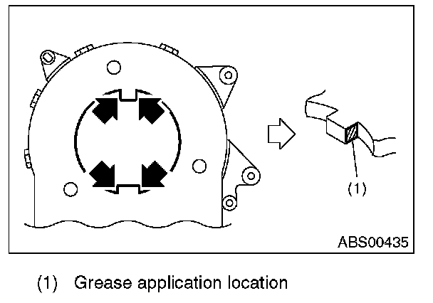 14) Apply the grease provided with the new part on the 4 locations of the protrusion on the steering angle sensor.