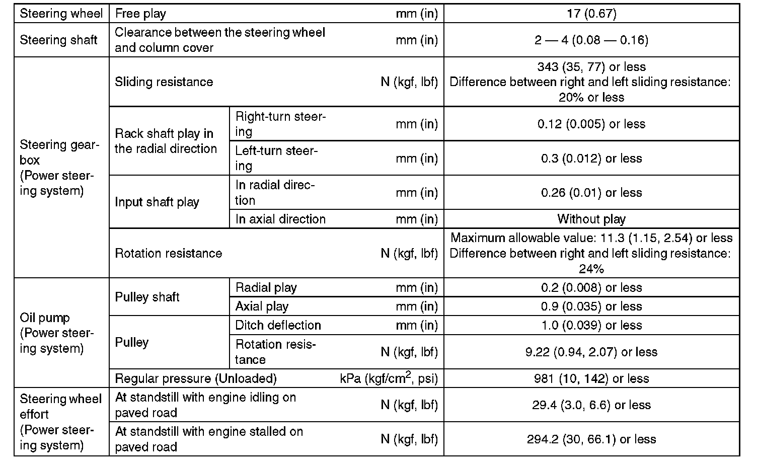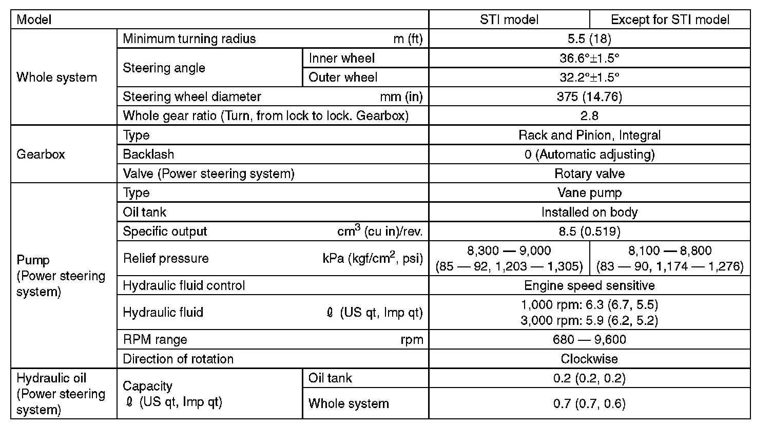 Steering: Specifications