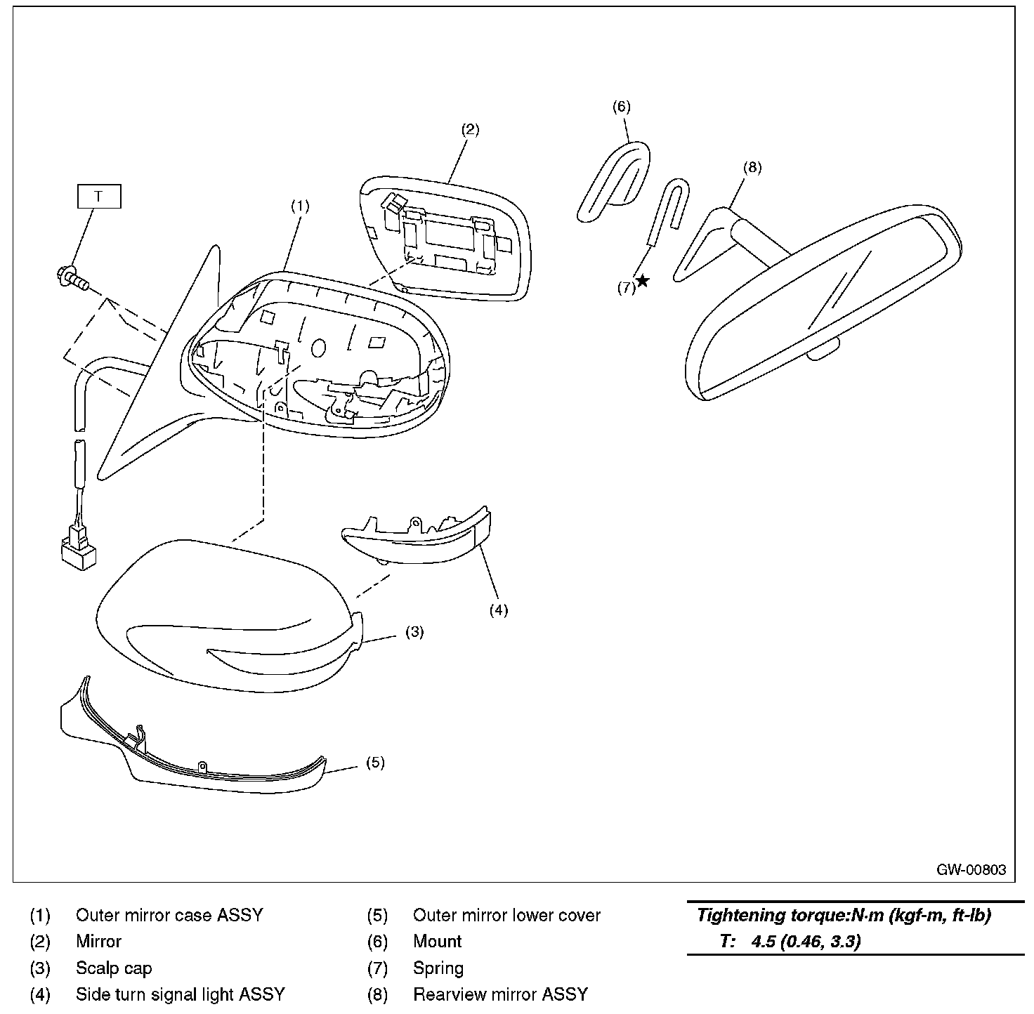 - Never reuse the spring. When the rearview mirror assembly is removed from the mirror base, fixed force will decline and the rearview mirror assembly may come off.